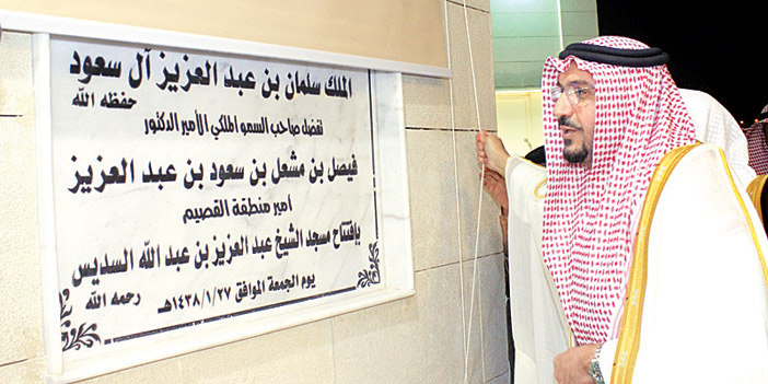 وأزاح سموه الستار إيذانًا بافتتاح المسجد، ثم أمّ الشيخ السديس الجميع في صلاة العشاء، عقب ذلك ألقى الشيخ السديس كلمة شكر من خلالها سمو أمير القصيم على افتتاحه لهذا المسجد، مؤكدًا أن عمارة المساجد والمساهمة فيها أمرها عظيم، مشيرًا إلى أن مسجد والده -رحمه الله- سيقام فيه الذكر وحلقات تحفيظ القرآن الكريم، منوهًا على حرص الدولة وفقها الله في العناية والاهتمام بالمساجد.