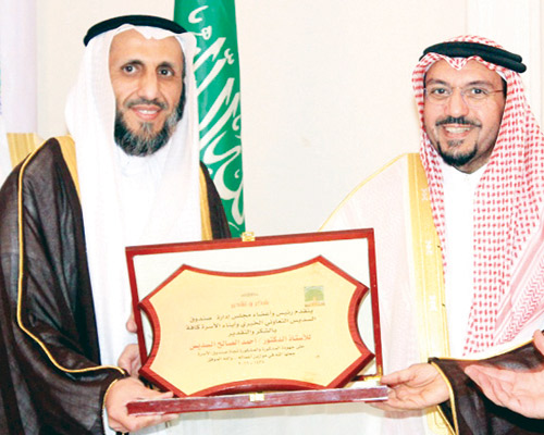 وفي ختام الحفل تم السحب على جائزة معالي الشيخ الكبرى وهي عبارة عن سيارة عائلية، ثم قدّم الشيخ عبدالرحمن السديس باسمه وباسم أبناء أسرة السديس درعًا تكريميًا لسمو أمير القصيم على حضوره وتشريفه لهذه المناسبة الطيبة؛ ثم تناول الجميع مأدبة العشاء المعدة بهذه المناسبة.