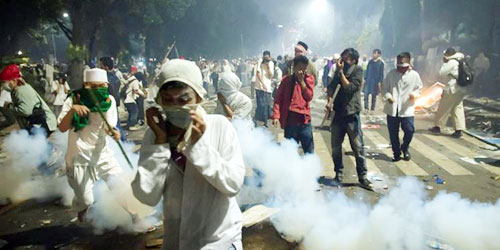 وقال بيان صادر عن مكتب ويدودو «بالنظر إلى أحدث الأوضاع والأحوال في إندونيسيا التي تتطلب وجود الرئيس قرر الرئيس جوكو ويدودو إرجاء زيارة الدولة المقررة إلى استراليا.» وانتقد ويدودو في مؤتمر صحفي نظم في الساعات الأولى من صباح أمس السبت بقوة «لاعبين سياسيين» لم يحددهم لإثارتهم احتجاجا كبيرا شابته أعمال عنف مساء الجمعة. وطالب عشرات الآلاف من المحتجين باستقالة حاكم جاكرتا باسوكي تجاهاجا بورناما وهو أول شخص من عرق صيني يشغل هذا المنصب بعدما تردد عن ازدرائه للقرآن. وقال بوي رافلي عمار المتحدث باسم الشرطة الإندونيسية في مؤتمر صحفي أمس السبت إن شخصا لقي حتفه وأصيب أكثر من مئة في الاشتباكات وكثير منهم من رجال الشرطة. وتابع أنه تم القبض على نحو 15 شخصا لنهبهم مركزا تجاريا صغيرا في شمال جاكرتا في حين يجري التحقيق مع عشرة بتهمة تأجيج العنف مشيرا إلى أن الواقعتين غير مرتبطتين بشكل مباشر. وأضاف عمار أن ثلاث سيارات أُحرقت كما لحقت أضرار بنحو 18سيارة. وقال «هذا مثال للهجمات الصادمة التي شنها هؤلاء الفوضويون». وبحلول صباح أمس السبت بدا أن معظم المحتجين تفرقوا وشوهد جنود مسترخون بينما يصلح العمال أضرارا لحقت بالنصب التذكاري.