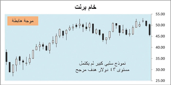 كسر خام برنت مستوى الدعم 48 دولاراً وصولاً إلى مستوى نفسي 45 دولار تماسك عنده نهاية الأسبوع، وكان الضغط بسبب ارتفاع الدولار وقلق المستثمرين والمضاربين من تصريحات المنتجين السلبية بخصوص اتفاقهم الأخير، على الرغم من أن تراجع الطلب الحقيقي للنفط هو العامل الجوهري والأخير يشكو تراجعاً مستمراً منذ 2013م، ويرجح الأسبوع المقبل أن يسجل برنت قاعاً أسبوعياً جديداً عند مستوى 43 دولاراً (دعم مؤقت) .