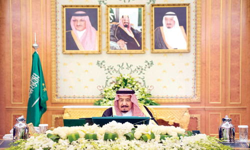 رأس خادم الحرمين الشريفين الملك سلمان بن عبدالعزيز آل سعود ـ حفظه الله ـ الجلسة التي عقدها مجلس الوزراء بعد ظهر أمس الاثنين بقصر اليمامة في مدينة الرياض.