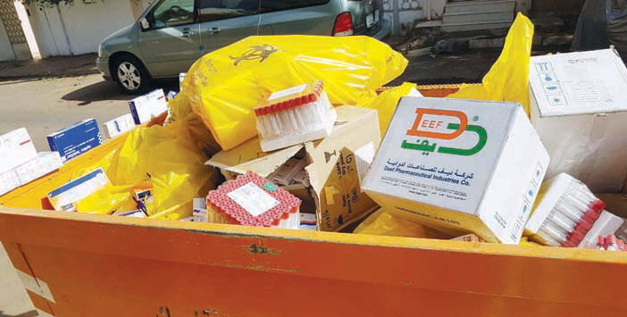 تفاجأ سكان حي السليمانية بتبوك ظهر أمس الأربعاء بكميات من الأدوية وأدوات طبية جديدة ومغلفة امتلأت بها أربع حاويات نفايات تقع بالقرب من مركز صحي حكومي، ويقول المواطن عبدالله الريس أحد سكان الحي أنه تفاجأ كما تفاجأ سكان الحي بهذه الأدوية التي تحمل شعار وزارة الصحة وهي تملأ حاويات النفايات وبعضها تنتهي مدته في نهاية عام 2017م ومنها ادوية سكر ومضادات حيوية وعدد كبير من الحقن الجديدة التي تكدست بها الحاويات ولم يخف الريس مخاوفه من خطورة هذه الادوية على الاطفال الذين يعبرون الشارع، مطالبا المسؤولين بوزارة الصحة باتخاذ الإجراءات اللازمة حيال مثل هذا الإهمال وطالب الصحة بفتح تحقيق بالواقعة وسرعة اخذ الادوية التي يجاورها مركز صحي حكومي.