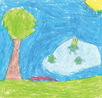 عندما أحسّت الحيوانات والطيور بخطر الثعبان الذي يهدد حياتها كل يوم، قررت الرحيل عن الغابة إلى مكان بعيد لا يعرف الثعبان المفترس الطريق إليها. وفي الصباح خرج الثعبان الضخم كعادته من جحره، فتعجب للهدوء الغريب، وظن في بداية الأمر أن الحيوانات والطيور اتفقت على ألا تصدر صوتاً حتى لا يستدل الثعبان على مكانها، فقال ساخراً: «سأعرف أماكنكم واحداً واحداً، اصمتوا ما شئتم، سأستدل عليكم وراح يقطع الغابة طولاً وعرضاً، ثم يتوقف في مكانه مترقباً، إلى أن بدأ القلق يتسرب إلى نفسه، وفي كل يوم يأتي عليه يلتف على نفسه أكثر، إلا أنه في نهاية الأمر قال: «لابد من الاعتراف بالحقيقة: لقد هاجرت الطيور والحيوانات هرباً مني، ولابد أن أبحث عن طعامي في مكان آخر وإلا مت جوعاً». وبينما كان الثعبان في جولة من جولاته الليلية، سمع صوت ضفادع يتردد عند أطراف الغابة حيث يمر غدير ماء، فدبّ الأمل في نفسه، واجتهد في زحفه باتجاه نقيق الضفادع وقال في نفسه: «فلتهاجر الحيوانات والطيور كما تشاء، لقد وجدت لي طعاماً لا يفرغ من هذه الضفادع». وهمّ الثعبان بأن ينقض على الضفادع إلا أنه تراجع قائلاً في نفسه: «لا!.. لابد لي أن أتخير الطريقة السليمة لاصطيادها دون أن تهرب مني كما فعلت الحيوانات والطيور». فاختار شجرة تطل على الغدير، واستطاع أن يراقبها ويعرف متى تنام، متى تأكل ومتى تلعب ليتمكن من أن ينفرد بها واحدة واحدة دون أن يلفت إليه أنظار باقي الضفادع. وبدأ الثعبان يختار الوقت الذي تبتعد ضفدعة عن باقي أصحابها فيتصيدها في حركة خاطفة ويمضي مسرعاً دون أن ينتبه إليه أحد إلا أن الضفادع انتبهت إلى اختفاء بعض صغارها فذهبوا إلى ملك الضفادع يسألونه عن الطريقة التي يعثرون بها على صغارهم الغائبين، إلا أنه سخر منهم قائلاً: أين هي المشكلة في هذا لابد أن هذه الضفادع تتسلى بألعابها هنا أو هناك وما تلبث أن تعود.. هيا اذهبوا ولا تشغلوني بأوهامكم السخية». لم تقتنع الضفادع بكلام ملكها، فلجأت إلى الضفدع الحكيم، وبعد أن استمع إلى القصة كاملة قال: «هذه مشكلة تستحق التفكير، فاختفاء الضفادع يعني أنها تقع فريسة لحيوان أو طير مفترس»، فسأله واحد من الضفادع: «ماذا نفعل أيها الحكيم، هل ننتظر حتى نختفي جميعاً؟» فأجاب الحكيم بحسم: «لا!.. بل ننظم أنفسنا، فنكلف مجموعة منا بحراسة المكان، حتى نعرف سر ما يجري حولنا». عملت الضفادع برأي الحكيم وكلفت واحدمن الضفادع بالمراقبة من داخل تجويف جذع شجرة، إلا أن الملل أصابها لطول ما بقيت في مكانها وكادت أن تخرج إلا أنها سمعت فحيحاً يزحف باتجاه ضفدعة تلهو وحدها، فأصدرت الضفدعة الحارسة نقيقاً يعبر عن الخطر لتنبيه الضفدعة التي تلعب ولتهرب باتجاه عشيرتها مطلقة صيحات التحذير.