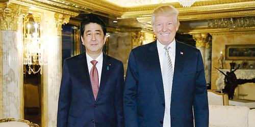 اعتبر رئيس الوزراء الياباني شينزو آبي أن دونالد ترامب زعيم يمكنه «الوثوق به» بعد أول لقاء للرئيس الأميركي المنتخب مع مسؤول أجنبي بهذا المستوى، فيما يواصل مشاوراته لملء المناصب الأساسية في إدارته المقبلة. واستقبل رجل الأعمال الثري آبي أمس الأول الخميس في نيويورك وسط مشاوراته المكثفة لتعيين الوزراء الرئيسيين في إدارته. قال آبي في تصريح للصحافيين إثر اللقاء الذي استغرق 90 دقيقة في مقره في برج ترامب «لدي قناعة بأن دونالد ترامب هو زعيم يمكنني الوثوق به كثيراً». لكنه لم يكشف مضمون المحادثات، واصفاً مباحثاته مع خلف باراك أوباما بأنها كانت «صريحة» وجرت «في أجواء ودية للغاية». غير أن تصريحات الملياردير أثناء الحملة الانتخابية كانت كفيلة بإثارة قلق اليابان، الحليفة الكبرى للولايات المتحدة في آسيا. فقد أكد أنه يبحث انسحاب القوات الأميركية من شبه الجزيرة الكورية والأرخبيل الياباني إن لم يرفع البلدان المعنيان البدل المالي لذلك بشكل كبير. كما اقترح تزود اليابان وكوريا الجنوبية بالسلاح النووي لمواجهة التهديد الكوري الشمالي، وهاجم اتفاقيات التبادل الحر كالشراكة عبر المحيط الهادئ، التي تعول عليها طوكيو لاحتواء النفوذ الصيني. ولم يتأكد التطرق إلى هذه الملفات الخميس، فيما أكدت المتحدثة باسم الرئيس المنتخب عدم إجراء أي «نقاش معمق» قبل تسلم منصبه رسمياً.