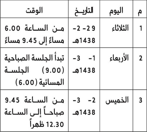واشتمل الجدول الزمني للقاء «التعايش المجتمعي وأثره في تعزيز اللحمة الوطنية» على النحو التالي: