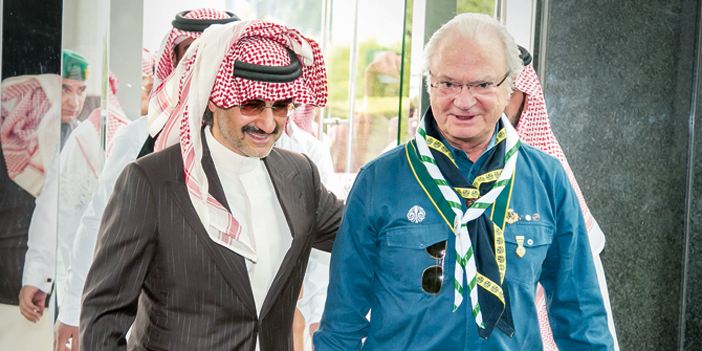 استقبل صاحب السمو الملكي الأمير الوليد بن طلال بن عبد العزيز آل سعود رئيس مجلس أمناء مؤسسة الوليد للإنسانية في مكتب سموه في برج المملكة بالرياض، جلالة الملك كارل جوستاف السادس عشر ملك السويد ورئيس الحركة الكشفية العالمية يوم الخميس 24 صفر1438هـ الموافق 24 نوفمبر 2016م.