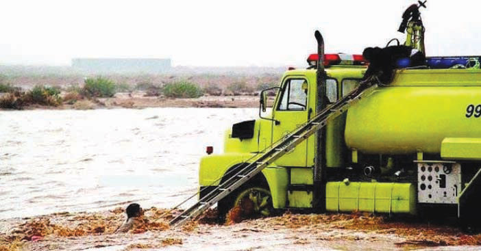 أنقذت فرق الدفاع المدني بمنطقة الرياض 104 أشخاص تعرضت مركباتهم للاحتجاز في مواقع برية وعرة في كل من الدوادمي وحريملاء وشقراء والمزاحمية وضرماء ورماح والرياض والحائر، وأضاف المتحدث الرسمي للدفاع المدني بمنطقة الرياض الرائد محمد الحمادي أن من بين الحالات التي باشرتها نتيجة الحالة المطرية التي شهدتها العاصمة الرياض من بدايتها ليلة الجمعة حتى مساء امس السبت 6 حالات احتجاز في مركبات بسبب حوادث مرورية، و 12 حالة التماسات كهربائية، وتسرب مياه من ملحق في السطح من عمارة سكنية، وانهيار جزء من منزل قديم (طيني) بحي عتيقه ولا يوجد إصابات، كما تمكنت فرق الدفاع المدني من انتشال غريق بجوار إسكان مطار الملك خالد.