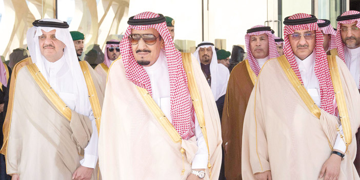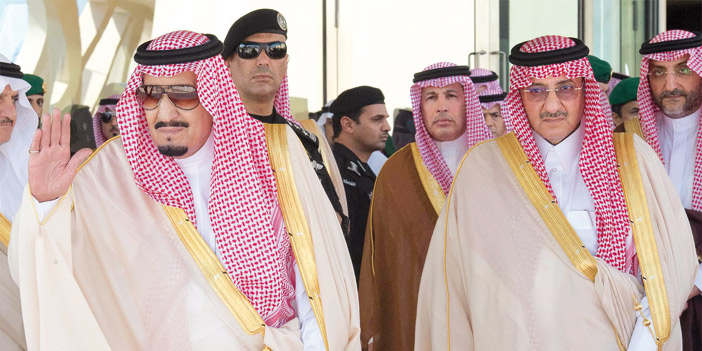 وفور وصول خادم الحرمين الشريفين، كان في استقباله -أيده الله- صاحب السمو الملكي الأمير محمد بن نايف بن عبدالعزيز ولي العهد نائب رئيس مجلس الوزراء وزير الداخلية، ثم عزف السلام الملكي.