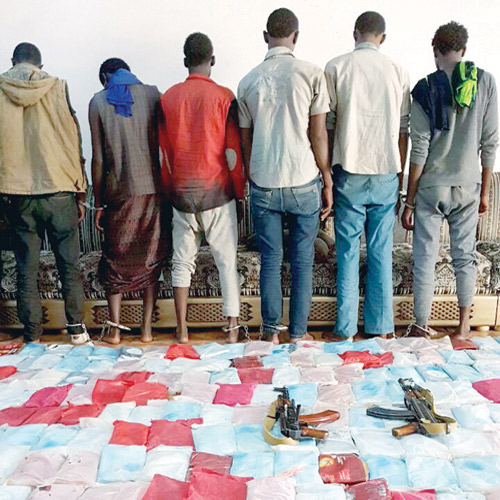 ألقت دوريات حرس الحدود بعد مواجهة مسلحة، القبض على 8 إثيوبيين مهربين بحوزتهم كمية من الحشيش المخدر وعدد رشاشين ناري.