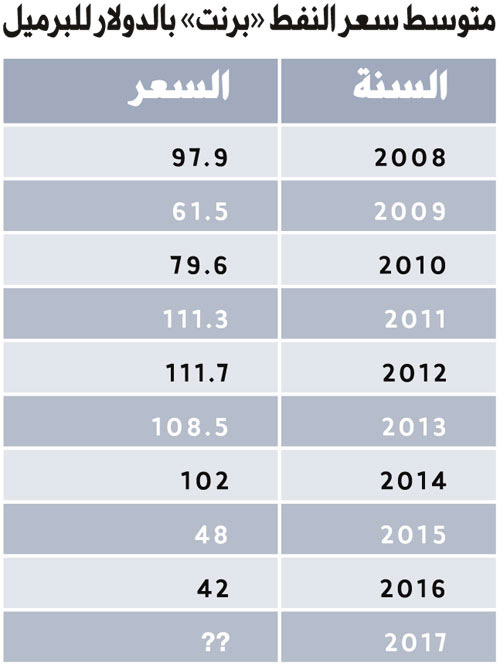 ويوضح الشكل البياني أن أسعار النفط كسرت سقف الـ40 دولارًا منذ مارس هذا العام تقريبًا لتسجيل متوسطات شهرية عند 46 دولارًا تقريبّا، بل إن عام 2016 يوشك السعر العالمي لإغلاقه عند مستوى 42 دولارًا للبرميل، وهو متوسط السعر حتى تاريخه. أما إذا أخذنا في الاعتبار أن متوسط السعر بدأ منذ الأول من ديسمبر فوق الـ50 دولارًا فالتوقعات أن يسجل مستوى أعلى من 42 دولارًا كمتوسط سنوي.