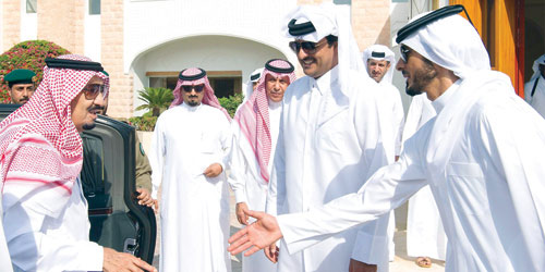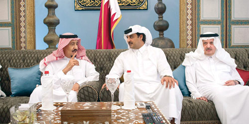شرَّف خادم الحرمين الشريفين الملك سلمان بن عبد العزيز آل سعود - حفظه الله - في قصر البحر بالدوحة أمس مأدبة الغداء الخاصة التي أقامها صاحب السمو الشيخ تميم بن حمد آل ثاني أمير دولة قطر، تكريماً للملك المفدى. حضر المأدبة صاحب السمو الملكي الأمير عبد الإله بن عبد العزيز آل سعود مستشار خادم الحرمين الشريفين، وصاحب السمو الأمير خالد بن فهد بن خالد، وصاحب السمو الملكي الأمير منصور بن سعود بن عبد العزيز، وصاحب السمو الملكي الأمير محمد بن فهد بن عبد العزيز، وصاحب السمو الملكي الأمير سعود بن فهد بن عبد العزيز، ومعالي وزير الدولة عضو مجلس الوزراء الدكتور إبراهيم بن عبد العزيز العساف، ومعالي وزير الدولة عضو مجلس الوزراء رئيس الديوان الملكي الأستاذ خالد بن عبد الرحمن العيسى.