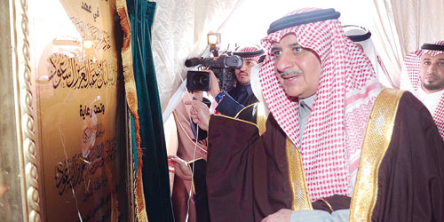 حيث قص سموه الشريط مدشنا المشاريع البلدية الجديدة التي تجاوزت قيمتها الـ 50 مليون ريال شملت مشروعات درء أخطار السيول وتصريف مياه الأمطار وسفلتة وأرصفة وإنارة وتحسين المداخل بالمركز وحدائق وممرات مشاة ومسطحات خضراء وتسوية المخططات المعتمدة.