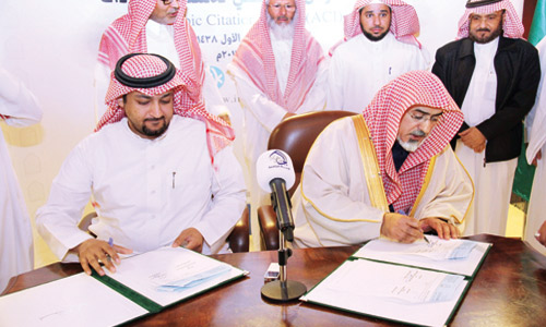 وقع معالي الأستاذ الدكتور سليمان بن عبدالله أبا الخيل مدير جامعة الإمام محمد بن سعود الإسلامية، يوم الخميس الماضي عقد تنفيذ مشروع الفهرس العربي الموحّد للاستشهادات مع مؤسسة (كيه) وهي إحدى الشركات المتخصصة في تقنية المعلومات في المملكة العربية السعودية وينتظر أن يستغرق تنفيذ العقد عاماً واحداً وسيتم تدشينه بمشاركة الجامعات السعودية والخليجية والعربية.