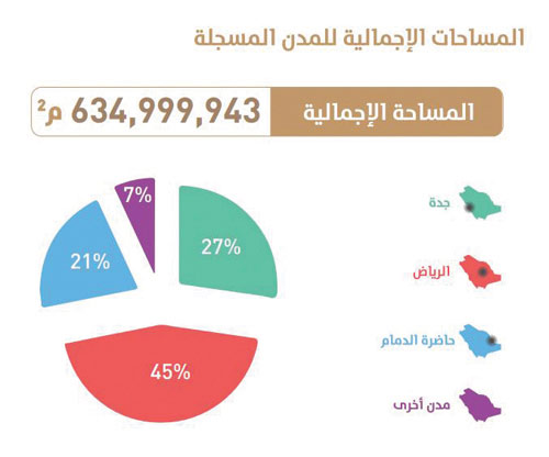 وأوضح المديهيم أن نصيب الرياض من الأراضي البيضاء 90 مليون متر مربع، ومحافظة جدة 160 مليون متر مربع، وحاضرة الدمام 11 مليون متر مربع، مشيرا إلى أن بعض الأراضي قد تكون مسجلة وليس عليها رسوم، حيث من الممكن أن تكون أقل من المساحات المطلوبة أو تكون أراضي مطورة أو اراضي مستثناة من قبل النظام، بالاضافة إلى أن هناك بعض الأخطاء في التسجيل من ناحية الأرقام.