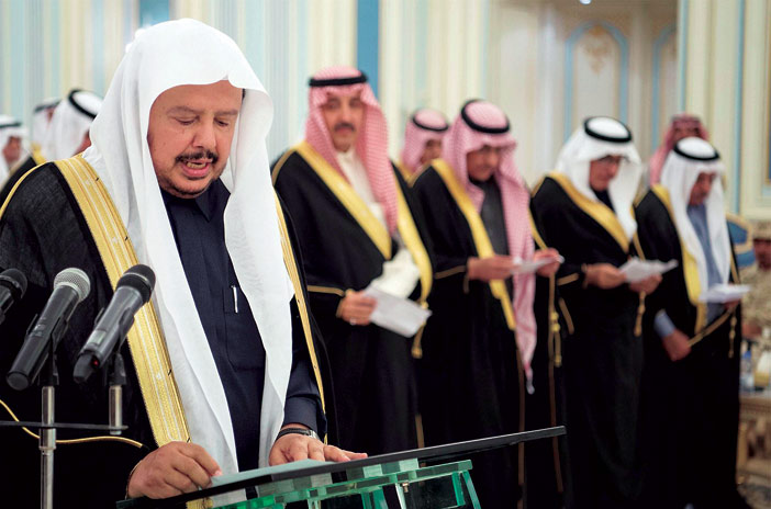 (أقسم بالله العظيم أن أكون مخلصًا لديني، ثم لمليكي وبلادي، وألا أبوح بسرٍّ من أسرار الدولة، وأن أحافظ على مصالحها وأنظمتها، وأن أؤدي أعمالي بالصدق والأمانة والإخلاص والعدل).