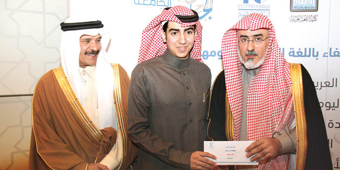 وكان الحفل قد انطلق في الساعة العاشرة والنصف من صباح هذا اليوم الأحد 19 / 3 / 1438هـ وتضمّن عرض فيلم بعنوان: «بقاء الجذور»، ثم قصيدة شعرية ألقاها الطالب معاذ الجريّد الفائز بالمركز الأول في مسابقة الكلية عن فرع الشعر، ثم محاضرة بعنوان: «دور صحيفة الجزيرة في خدمة اللغة العربية» قدمها سعادة الأستاذ خالد المالك، واستعرض فيها جانباً مهماً من تجربة صحيفة الجزيرة في الاهتمام باللغة العربية على مستويي الرؤى والتطبيقات.