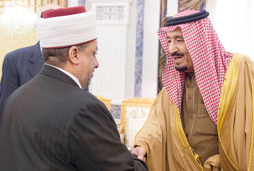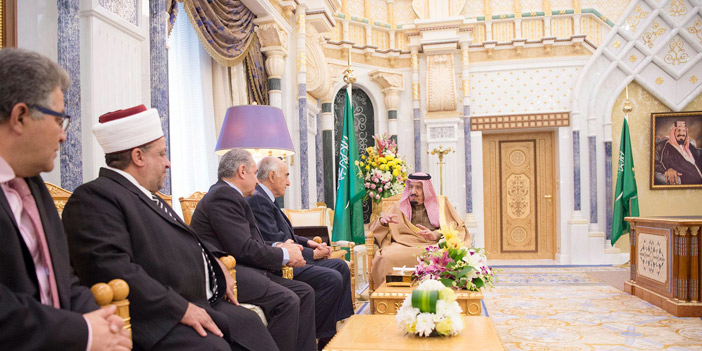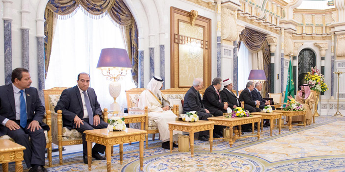 استقبل خادم الحرمين الشريفين الملك سلمان بن عبدالعزيز آل سعود - حفظه الله - في مكتبه بقصر اليمامة في الرياض أمس رئيس مجلس إدارة صندوق القدس منيب رشيد المصري، يرافقه أعضاء مجلسي الإدارة والأمانة العامة لصندوق ووقفية القدس.
