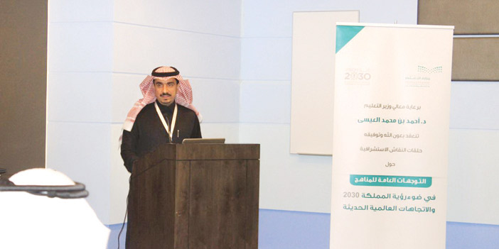 برعاية وزير التعليم الدكتور أحمد بن محمد العيسى افتتح وكيل الوزارة للمناهج والبرامج التربوية والمشرف العام على حلقات النقاش الدكتور محمد بن عطية الحارثي حلقة النقاش الاستشرافية الثالثة حول التوجهات العامة للمناهج وذلك في ضوء رؤية المملكة 2030 والاتجاهات العالمية الحديثة والتي نظمتها وكالة الوزارة للمناهج والبرامج التربوية أمس الأول الأربعاء بالرياض.