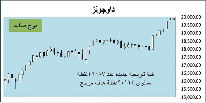 داوجونز يختم بقمة تاريخية جديدة قريبة من الحاجز 20000 نقطة