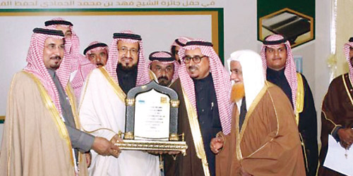 استقبل محافظ الدوادمي مران ابن قويد مساء الأربعاء الماضي بمقر المحافظة صاحب السمو الأمير الدكتور سعود بن سلمان ابن محمد آل سعود بحضور عدد من المشايخ والقيادات الأمنية والمدنية, وبعد استراحة قصيرة وتناول القهوة صحب المحافظ ضيفه الكبير إلى مركز البلدية للمناسبات ليشرف سموّه رعاية احتفال جائزة الشيخ فهد بن محمد الحمادي السنوية لحفظ القرآن الكريم وسط حضور جماهيري كبير من المسؤولين والوجهاء والأعيان ورجال المال والإعلام والأكاديميين وطلبة المدارس والكليات والأهالي الذين تقدموا للسلام على سموّه, وبعد أن أخذ مكانه بالحفل بدأت برامج الحفل بالقرآن الكريم, تلا ذلك كلمة رئيس الجمعية الخيرية لتحفيظ القرآن رحب خلالها بسمو الأمير وشكره على حضوره ورعايته الكريمة لهذه الاحتفائية المباركة, فيما أثنى فضيلته على صاحب الجائزة الشيخ فهد الحمادي، داعياً الله أن يجعل ذلك في موازين حسناته, ثم تم تقديم نماذج من تلاوات الحُفاظ والتي شدّت انتباه الحضور, ثم ألقى صاحب الجائزة الشيخ فهد الحمادي كلمة مرحّباً بسموّ الأمير على رعايته هذا الاحتفال, وشاكراً للجميع حضورهم, ومبدياً إعجابه بهذه الكوكبة المنيرة من حفظة كتاب الله وكذلك القائمين على الجائزة وتنظيم الاحتفال لما بذلوه من جهود ملموسة, داعياً رب العزة والجلال أن يكتب ثواب هذه الجائزة له ولوالديه - رحمهم الله - تلا ذلك عرض متلفز عن صاحب الجائزة من حيث نشأته وتعليمه في ابتدائية عرجاء مسقط رأسه, وتدرجه في حياته العملية وأعماله الخيرية المتعددة التي شملت محافظته الدوادمي، ثم ألقى راعي الحفل سمو الأمير الدكتور سعود بن سلمان بن محمد آل سعود كلمة ضافية وافية جاء فيها: إن بلادنا - ولله الحمد - في ظل قيادة خادم الحرمين الشريفين الملك سلمان بن عبدالعزيز - وفقه الله - حرصت على دعم أعمال الخير، ومن أبرزها دور تحفيظ القرآن الكريم والتي نسعد بانتشارها في كل مدينة وقرية, وأضاف سموّه ليس أثمن من التجارة مع الله في مثل هذه الأعمال الخيرية, وسأل الله تعالى في ختام حديثه أن يوفق القائمين عليها من معلمين وداعمين وطلاب, وشكر اللّه أن يسّر له هذه المشاركة المباركة. وفي ختام فعاليات الاحتفال تفضل سمو الأمير والمحافظ ورئيس الجمعية بتسليم الجوائز للفائزين, فيما قدّم رئيس الجمعية الشيخ عبدالعزيز العقيل درعاً تذكارياً لسمو الأمير راعي هذه الاحتفائية, وكذلك درعاً لمحفظ الدوادمي, وآخر لصاحب الجائزة الشيخ فهد الحمادي, وقد تبرع سموّ الأمير - وفقه الله - بمبلغ مائتي ألف ريال لوقف (بيّنات) وكذلك قطعتي أرض بالدوادمي إحداها لجمعية تحفيظ القرآن وأخرى لمكتب الدعوة والإرشاد.