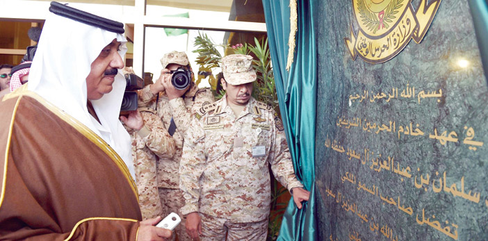 وحول هل لا زال الحرس الوطني قائما بحفظ المنشآت قال سموه لم يعد الحرس الوطني قائماً بذلك وأنا أشكر سمو ولي العهد ووزير الداخلية أخي الأمير محمد بن نايف على جهوده لضم حراسة المنشآت لوزارة الداخلية حتى يتمكن الحرس الوطني من تدريباته ومهامه ونحن في خدمة الوطن في أي مكان. وقد حضر الحفل كل من معالي نائب وزير الحرس الوطني عبدالمحسن التويجري ومعالي مساعد وزير الداخلية للشؤون الأمنية الفريق أول سعيد القحطاني ومعالي رئيس هيئة الأركان العامة الفريق أول عبدالرحمن البنيان ومعالي الفريق أول يوسف الإدريسي نائب رئيس الاستخبارات العامة ومعالي الفريق أول فيصل بن لبدة مستشار وزير الحرس الوطني ووكيل الحرس الوطني للأفواج الأمير خالد بن عياف ومعالي الفريق محمد بن سحيم قائد الدفاع الجوي ومعالي رئيس الجهاز العسكري الفريق محمد الناهض ومعالي قائد القوات البحرية عبدالله السلطان ومعالي مدير الأمن العام الفريق عثمان المحرج وعدد من القادة العسكريين في وزارة الدفاع والداخلية والحرس الوطني وقادة الأفواج.