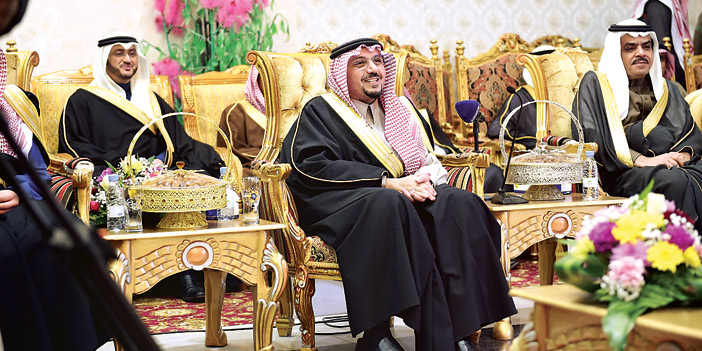 بعد ذلك بدأت الفقرات الخطابية بالقرآن الكريم رتله أحد أبناء شهداء الواجب وهو الشبل ماجد الحمادي ثم ألقى الشاعر قرناس الكرشمي قصيدة شعرية، وبعدها ألقى الشاعر الكبير سعود الحافي قصيدة وطنية حماسية صفق لها الحاضرون كثيرًا، وبعد ذلك قصيدة للشاعر مخلد سعيد بن سمار ألقاها المنشد رائد الغضباني، ومن ثم قدم عدد من أبناء شهداء الواجب محاورة شعرية من كلمات الشاعر حبيب العازمي ثم أوبريت إنشادي وطني جميل من كلمات الشاعر حبيب العازمي قام بأدائه عدد من الشبان بصورة جميلة. وفي لفتة أبوية حانية احتضن سموه الكريم أبناء شهداء الواجب مقبلاً كل واحد منهم ملتقطًا الصور التذكارية معهم، وبعد نهاية الاحتفال تفضل سموه والحاضرين بتناول طعام العشاء الذي تم إعداده بهذه المناسبة الكبيرة.
