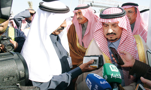 وكان سموه قد وصل إلى مكان الاحتفال حيث كان في استقباله معالي وزير الشؤون البلدية والقروية معالي المهندس عبداللطيف آل الشيخ ومعالي أمين منطقة الرياض المهندس إبراهيم السلطان ومدير شرطة منطقة الرياض اللواء سعود الهلال ومدير مرور الرياض لواء الدكتور محمد شباب البقمي ووكلاء الأمانة ومديرو الإدارات وعدد من رؤساء البلديات والشيخ سليمان محمد السلمان العضو المنتدب لشركة شبه الجزيرة للمقاولات والشيخ مراد السليمان نائب الرئيس التنفيذي وعدد من المسؤولين في الشركة.