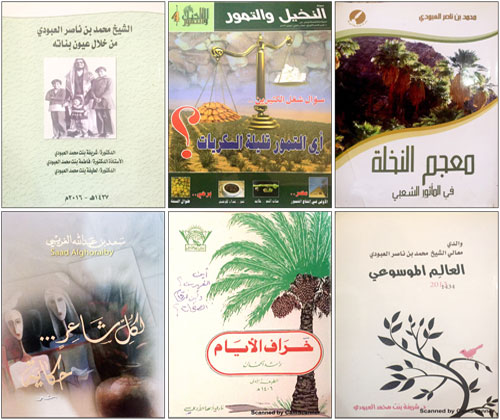 أميرة الصحراء / شجرة العذراء / معلومات عن النخيل في المملكة / كتاب النخل : السجستاني / نخلتك / النخل في تاريخ العراق / النخلة / نخلة التمر / النخلة العربية / النخيل في الجاهلية / النخيل في حايل / النخيل وتصنيع التمور / النخيل في الإمارات / النخيل والتمور في العراق / النخيل والتمور وآفاتهما في العراق / ندوة النخيل في مجلّة الخفجي / أصناف التمور المشهورة في المملكة / بحث عن التمور / المخصص لابن سيده / نخلة التمر ماضيها وحاضرها / نخيل التمر في المملكة / نخيل التمر / النخيل / نخلة التمر .. شجرة الحياة / النخلة في تاريخ البحرين / ندوة النخيل (البحرين) / تمور القصيم / تقنيات ما بعد الحصاد / المحتوى الغذائي لبعض تمور المملكة / دليل إعداد وتجهيز محصول التمور / مجلة النخيل والتمور (9 أعداد) / الشجرة المباركة (مجلة) الإمارات.
