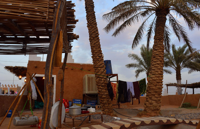 اشتملت ساحة القرية الشعبية في مهرجان تمور محافظة رياض الخبراء على المزرعة القديمة التي تحتوي على عددٌ من الحـِرف مثل السقاية قديماً وأحواض الزراعة والغرس والحصاد وماكينة ضخ المياه علاوة على تسلق النخيل من خلال " الكر" ، بالإضافة إلى " خراف التمور" ، كما تتعالى الأهازيج الشعبية .