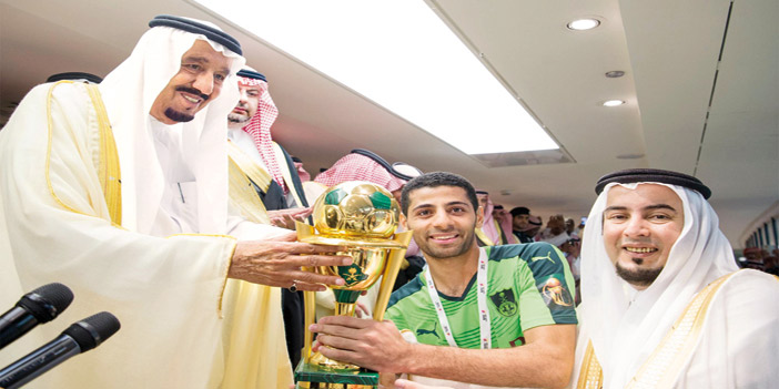 توج خادم الحرمين الشريفين الملك سلمان بن عبدالعزيز فريق الأهلي بكأس خادم الحرمين الشريفين بعد فوزه على فريق النصر بهدفين لهدف في اللقاء الذي أقيم على استاد مدينة الملك عبد الله الرياضية.
