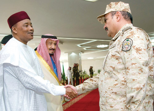 استقبل خادم الحرمين الشريفين الملك سلمان بن عبدالعزيز آل سعود - حفظه الله - في قصر اليمامة أمس فخامة الرئيس ايسوفو محمدو رئيس جمهورية النيجر.