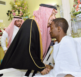 وفي سياقٍ ذي صلة توجه سمو أمير منطقة الرياض في وقت لاحق أمس إلى المستشفى لزيارة رجل الأمن الذي أصيب خلال المواجهة العريف جبران جابر عواجي. واطمأن سموه على سلامته، واصفاً ما قام به مع زملائه في العملية بـ (العمل البطولي) الذي نفذ بكل دقة واجتهاد، مؤكِّداً أنهم بذلك ضربوا أروع الأمثلة في الذود عن وطنهم.