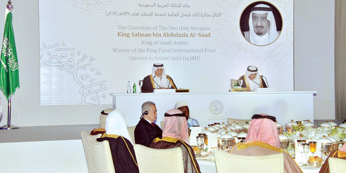 تم اختيار خادم الحرمين الشريفين الملك سلمان بن عبدالعزيز آل سعود - حفظه الله - لنيل جائزة الملك فيصل العالمية لخدمة الإسلام لهذا العام، نظير عنايته - أيده الله - بخدمة الحرمين الشريفين وقاصديهما، واهتمامه بالسيرة النبوية ودعمه لمشروع الأطلس التاريخي للسيرة النبوية، وسعيه الدائم لجمع كلمة العرب والمسلمين لمواجهة الظروف الصعبة التي تمر بها الأمتان العربية والإسلامية، جاء ذلك خلال إعلان صاحب السمو الملكي الأمير خالد الفيصل بن عبدالعزيز مستشار خادم الحرمين الشريفين، أمير منطقة مكة المكرمة الرئيس التنفيذي لمؤسسة الملك فيصل الخيرية، رئيس هيئة جائزة الملك فيصل العالمية، أسماء الفائزين بجائزة الملك فيصل العالمية في دورتها « 39 « لهذا العام 1438هـ ـ 2017 م، في فروعها الخمسة. وقد أقيم مساء امس حفل خطابي بهذه المناسبة في قاعة الاحتفالات بمبنى مركز الخزامى بحضور أعضاء لجان الاختيار، حيث ألقى صاحب السمو الملكي الأمير خالد الفيصل بن عبدالعزيز كلمة رحب فيها بالفائزين وحضور حفل إعلان أسماء الفائزين بالجائزة. وقال سموه «هذه الجائزة تحمل اسم الرجل الذي عندما سُئل في آخر لقاء صحفي له عن كيف يرى المملكة العربية السعودية، بعد سنة 2000 قال «ما معناه أتمنى أن تكون المملكة مصدر إشعاع للإنسانية»، رحم الله فيصل بن عبدالعزيز وأسكنه فسيح جناته وجمعنا وإياه في جنات نعيم إن شاء الله». وأضاف سموه « أيها الإخوة باسمكم جميعا أودّ أن أشكر بهذه المناسبة جميع من أسهم في تحقيق هذا الإنجاز في هذا العام، وأخص أعضاء لجان الاختيار الذين شرفونا بوجودهم في هذه الأيام التي عكفوا فيها على الأسماء والأعمال التي هم أدرى بقيمتها وأعلم منا بخصائصها وبأسرارها، وبمن يستحق هذه الجائزة، وجدوا واجتهدوا وخرجوا بمجموعة أسماء مرشحة لهذه الجائزة بجميع فروعها» وأردف سمو الأمير خالد الفيصل يقول « اسمحو لي أن أستعير الإعلان عن إحدى هذه الجوائز، وهو الإعلان عن جائزة خدمة الإسلام التي قدمت هذا العام لخادم الحرمين الشريفين الملك سلمان بن عبدالعزيز آل سعود ـ حفظه الله ـ ، وإنني إذا أقول ذلك بكل فخر واعتزاز فإنني أتمنى لمليكي ولأستاذي ولقدوتي في هذا الوقت، كل الخير إن شاء الله والعمر المديد والمزيد من النجاح في قيادة هذه الأمة السعودية إلى المكانة المرموقة لها وأن يصل هذا العمل الخير الذي يقوده إلى كل مسلم على وجه الأرض، هنيئً لنا هنيئاً للمسلمين، وهنيئاً لأصحاب الاستحقاق لهذه الجائزة لهذا العام ». وحصل أربعة باحثين ومؤسسة علمية على جائزة الملك فيصل العالمية، حيث فاز الدكتور رضوان السيد من لبنان، وهو أستاذ في كلية الآداب بالجامعة اللبنانية، بجائزة الملك فيصل في فرع الدراسات الإسلامية وموضوعها « الفكر السياسي عند المسلمين حتى القرن التاسع الهجري.. الخامس عشر الميلادي». وفي فرع اللغة العربية والأدب وموضوعها «جهود الأفراد أو المؤسسات في تعريب العلوم والتقنيات نقلاً وبحثاً وتعليماً»، فاز مجمع اللغة العربية الأردني بجائزة الملك فيصل العالمية للغة العربية والأدب تقديراً لجهوده العلمية في ترجمة العلوم والتقنية ونقل المصطلحات العلمية. فيما فاز بجائزة الملك فيصل العالمية للطب «العلاجات البيولوجية في أمراض المناعة الذاتية» البروفيسور تادامتسو كيشيموتو من اليابان الذي يشغل منصب أستاذ المناعة في مركز فرونتير لأبحاث المناعة بجامعة أوساكا في اليابان، نظير دوره البارز في اكتشاف وتطوير علاج بيولوجي جديد وناجع لأمراض المناعة الذاتية. وتقاسم السويسري الدكتور دانيال لوس، أستاذ الفيزياء النظرية بجامعة بازل في سويسراجائزة الملك فيصل العالمية للعلوم في « الفيزياء « مع الهولندي الدكتور لورينس مولينكامب، أستاذ الفيزياء التجريبية في معهد الفيزياء بجامعة يوزبيرك في ألمانيا. وقال الأمين العام لجائزة الملك فيصل العالمية الدكتور عبد العزيز السبيّل، إن خادم الحرمين الشريفين نال هذه الجائزة نظير عنايته الفائقة بخدمة الحر