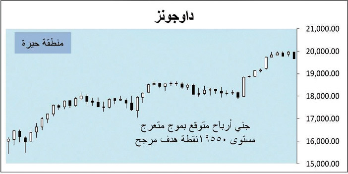 أغلق مؤشر الداوجونز الأسبوع الماضي على نمط بيعي متوسط، شطب فيه أرباح أربعة أسابيع ماضية، وتعتبر بداية سلبية للعام الحالي، ولكن متوقعة؛ والسبب يعود إلى الترقب لسياسات الحكومة الجديدة في أمريكا وموقفها من الفدرالي الأمريكي، على أننا نرى أن الفدرالي خارج عن سلطة الحكومة حسب تاريخها لأكثر من مئة عام. ويرجح الأسبوع المقبل أن يدخل السوق في موج هابط متعرج، يستهدف مستوى الدعم الفني 19550 نقطة.