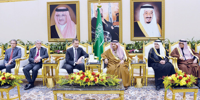 وكان في استقبال جلالته لدى وصوله مطار الملك خالد الدولي صاحب السمو الملكي الأمير فيصل بن بندر بن عبدالعزيز أمير منطقة الرياض، وصاحب السمو الأمير منصور بن خالد بن عبدالله الفرحان سفير خادم الحرمين الشريفين لدى مملكة إسبانيا، ومعالي وزير الثقافة والإعلام الدكتور عادل بن زيد الطريفي الوزير المرافق، ومعالي أمين منطقة الرياض المهندس إبراهيم بن محمد السلطان، والسفير الإسباني لدى المملكة خواكين بيريث بيانويبا، ومندوب عن المراسم الملكية.