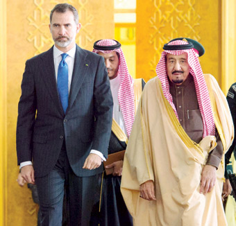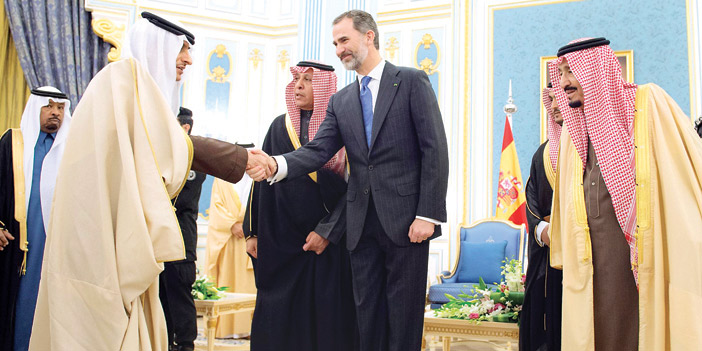 عقد خادم الحرمين الشريفين الملك سلمان بن عبدالعزيز آل سعود -حفظه الله- في قصر اليمامة بالرياض أمس، جلسة مباحثات رسمية مع جلالة الملك فيليب السادس ملك مملكة إسبانيا.