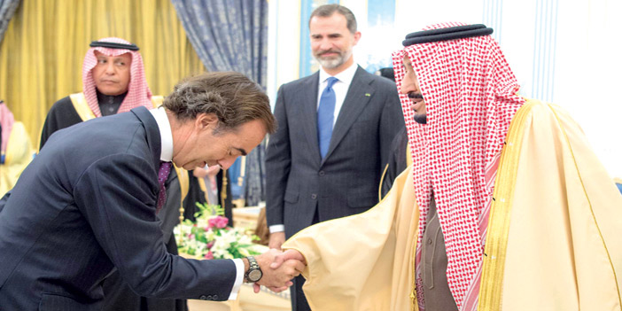 كما صافح خادم الحرمين الشريفين -أيده الله- الوفد الرسمي المرافق لجلالة ملك إسبانيا.