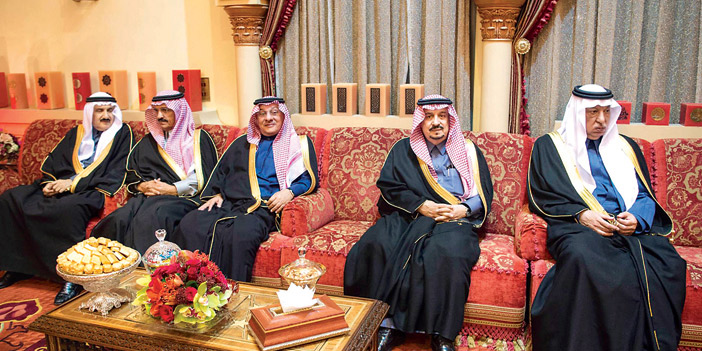 حضر الاستقبال ومأدبة الغداء صاحب السمو الأمير خالد بن فهد بن خالد، وصاحب السمو الملكي الأمير فيصل بن بندر بن عبدالعزيز أمير منطقة الرياض، وصاحب السمو الأمير خالد بن سعد بن فهد، وصاحب السمو الملكي الأمير خالد بن بندر بن عبدالعزيز مستشار خادم الحرمين الشريفين، وصاحب السمو الملكي الأمير الدكتور منصور بن متعب بن عبدالعزيز وزير الدولة عضو مجلس الوزراء مستشار خادم الحرمين الشريفين، وصاحب السمو الملكي الأمير متعب بن عبدالله بن عبدالعزيز وزير الحرس الوطني، وصاحب السمو الأمير فهد بن عبدالله بن مساعد، وصاحب السمو الملكي الأمير سطام بن سعود بن عبدالعزيز، وصاحب السمو الأمير الدكتور تركي بن سعود بن محمد رئيس مدينة الملك عبدالعزيز للعلوم والتقنية، وصاحب السمو الأمير أحمد بن عبدالله بن عبدالرحمن محافظ الدرعية، وصاحب السمو الأمير خالد بن سعود بن خالد المستشار بالديوان الملكي، وصاحب السمو الأمير بندر بن سعود بن محمد المستشار بالديوان الملكي، وصاحب السمو الملكي الأمير الدكتور عبدالعزيز بن سطام بن عبدالعزيز مستشار خادم الحرمين الشريفين، وصاحب السمو الملكي الأمير عبدالعزيز بن تركي بن عبدالعزيز المستشار في وزارة الطاقة والصناعة والثروة المعدنية، وصاحب السمو الملكي الأمير عبدالله بن مساعد بن عبدالعزيز رئيس الهيئة العامة للرياضة، وصاحب السمو الملكي الأمير سعود بن سلمان بن عبدالعزيز.