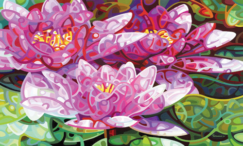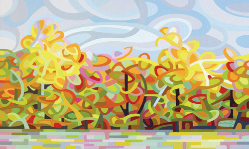 الفنانة الكندية (ماندي بودان) تبهر مشاهدي أعمالها بأسلوبها في التكوين والتلوين بألوان الأكريليك مستوحاة من الطبيعة، تعتمد فيها على الإيقاع اللوني المجرد في جانب التكوين، تستلهم لوحاتها من الطبيعة وتبحث عن أجمل ما يمكن الوصول إليه في صفاء اللون اعتمادا على مؤثرات الضوء المنبعثة من الشمس في حالات تكون فيها الشمس في أفضل فترة زمنية من الإشراق لتتمكن من استخلاص تلك البهجة اللونية، استطاعت بهذا الأسلوب أن تلفت النظر وتصبح من أوائل الأسماء التي لها مساحة من الاهتمام والاقتناء، هذه التقنيات وطرق التنفيذ برزت بشكل كبير بعد أن أخذت ألوان الإكرلك بنقاوة اللون مكانتها منافسة للألوان الزيتية.
