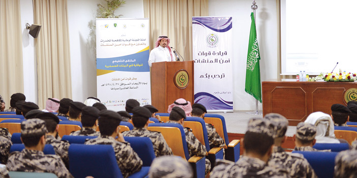 من جانبه أوضح أمين عام اللجنة الوطنية لمكافحة المخدرات الأستاذ عبد الإله بن محمد الشريف في كلمته النجاحات التي تحققت في الملتقيات السابقة بدعم ورعاية من ولاة الأمر - حفظهم الله - مؤكداً أهمية قطاع قوات أمن المنشآت، شاكراً منسوبي القوات على الجهود المميزة والفائقة في وقاية وتأمين وحماية منشآتنا الحيوية والمؤسسات والمشروعات العامة.