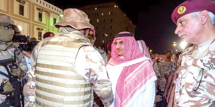 إشارة إلى ما رفعتموه لنا عن إنجازات أبنائنا رجال الأمن البواسل في قطاعات الأمن المختلفة لاسيما في مكافحة الإرهاب ورصد ومتابعة الإرهابيين وملاحقتهم ومداهمة أوكارهم، والقبض عليهم، وآخر ذلك ما جاء ببرقية سموكم رقم 106875 بتاريخ 23-4-1438هـ. ولقد سرنا كثيراً ما سطره أبناؤنا رجال الأمن الأوفياء من بطولات وتضحيات فداء لدينهم ووطنهم وأمتهم ومقدساتهم ممتثلين لأمر الحق سبحانه وتعالى بالصبر والمصابرة في سبيل الله في مواجهة فئة ضالة آثمة باغية خالفت أمر ربها وسنة نبيه -صلى الله عليم وسلم-، واتبعت سبل الشيطان فأغواهم وزين لهم سوء أعمالهم فاستحلوا الدماء التي حرمها الله، ولم تسلم منهم بيوت الله، وطال أذاهم وإجرامهم القريب والبعيد، ولم يسلم منهم والد ولا أخ ولا صديق ولا قريب، فكشف الله خزيهم، وأحبط أعمالهم، بفضله سبحانه ثم بجهود رجال الأمن الأبطال. وإننا إذ نشكر سموكم وجميع رجال الأمن الأوفياء على ما يبذلونه من جهود وتضحيات وبطولات، ونشدّ على أيديهم واحداً واحداً باعتزاز وتقدير، لنسأل المولى سبحانه أن يتغمد الشهداء منهم بواسع رحمته ويسكنهم فسيح جناته ويمن على المصابين بالشفاء العاجل وأن يحفظ على بلادنا أمنها واستقرارها ويرد كيد الكائدين في نحورهم إنه ولي ذلك والقادر عليه.