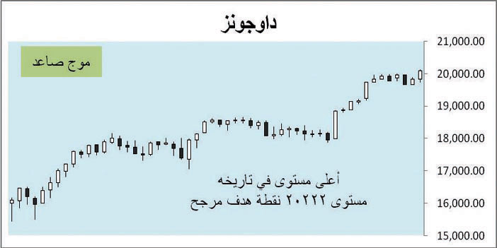 أغلق مؤشر الداوجونز الأسبوع الماضي على نمط شرائي قوي مكنه من مغادرة منطقة الحيرة إلى موج صاعد اخترق فيه حاجز العشرين ألف نقطة لأول مرة في تاريخ السوق، بسبب شركات التشييد والبناء وشركات الطاقة على خلفية سياسات الحكومة الأمريكية الجديدة، ويرجح الأسبوع المقبل أن يستهدف هذا السوق مستوى قريباً من 20222 نقطة بنمط شرائي جديد يعزز الموج الصاعد الذي يبدو أنه أخر من عملية التصحيح الفني.