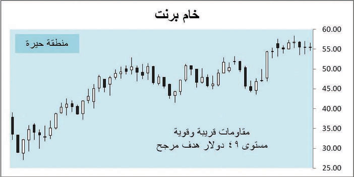 أغلق خام برنت الأسبوع الماضي على نمط بيعي متوسط داخل منطقة حيرة رغم الضعف الملحوظ في الدولار بسبب ارتفاع الذهب وكان الإغلاق عند مستوى 55.53 دولاراً لخام برنت، والسبب في هذا الضعف هو تخوف المتداولين والمستثمرين من احتمال إقرار الرئيس الأمريكي الجديد ضريبة على الواردات النفطية ويأتي هذا القرار بعد عام ونصف من فتح التصدير للنفط الأمريكي لأول مرة منذ 45 عاماً، لذا سيكون القرار مربكاً وقوياً.
