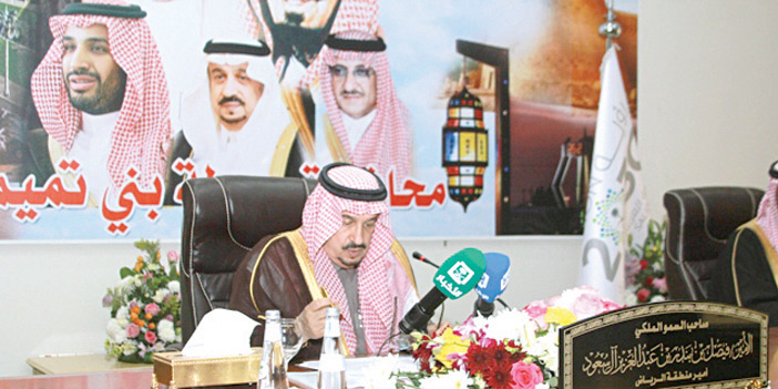 ثم ألقى صاحب السمو الملكي الأمير فيصل بن بندر بن عبدالعزيز كلمة قال فيها: إن لحوطة بني تميم وقفات مع الدولة السعودية في مراحلها المتعددة، وفي هذا العهد وعهد المؤسس كان لها دور بارز في توحيد هذا الكيان فنسأل الله تعالى أن يجعلها دائما مهبط خير وأن يكون أبناؤها على مستوى الثقة لما فيه الخير والصلاح، إننا أيها الإخوة في هذا الوطن نسعد جميعا بقيادة واضحة وراسخة موجهة للجميع لما فيه الخير والنجاح لكل جزء من وطننا، إن سيدي خادم الحرمين الشريفين الملك سلمان بن عبدالعزيز يبلغكم تحياته ويرجو لكم دوام التوفيق والسداد وكذلك سمو ولي عهده وسمو ولي ولي عهده، أيها الإخوة إن هذه المحافظة شعرت بها ثبات واضح وقدرات لها مكانة عندنا جميعا ولها أبناء يستطيعون أن يفكروا بشكل جيد ويخدموا هذه المحافظة بكل ما أوتوا من قوة فلهم جميعا الشكر والتقدير على هذه المواقف، وستكون دولتكم معكم دائما كما كانت سابقا ومستمرة -بإذن الله- في المستقبل لما فيه عزة المحافظة وأركان هذا الوطن، لكم مني جميعا وزملائي في الأجهزة الحكومية والزملاء في القطاع الخاص والشركات والمؤسسات الذين يؤدون دوراً كاملاً ونطلب منهم المزيد الدائم وسيكونون لبنات خير وبركة وسلامة وسؤدد لهذا الوطن، أرجو للجميع دوام التوفيق، ثم تناول الجميع طعام الغداء الذي أعد بهذه المناسبة.