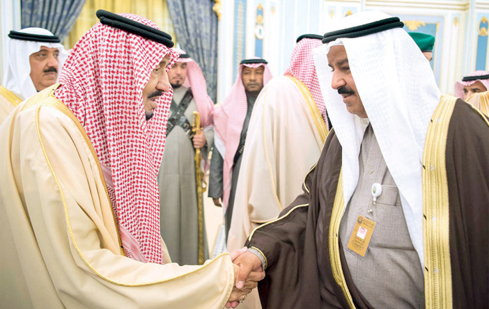 استقبل خادم الحرمين الشريفين الملك سلمان بن عبدالعزيز آل سعود - حفظه الله - في قصر اليمامة بالرياض أمس ضيوف المهرجان الوطني للتراث والثقافة « الجنادرية 31» من الأدباء والمفكرين. وبدئ حفل الاستقبال بآيات من الذكر الحكيم . وقد ألقى خادم الحرمين الشريفين الملك سلمان بن عبدالعزيز آل سعود- أيده الله - خلال الاستقبال الكلمة التالية : الحمد لله رب العالمين، والصلاة والسلام على نبينا محمد وعلى آله وصحبه أجمعين ضيوفنا الكرام أيها الإخوة الحضور السلام عليكم ورحمة الله وبركاته:ـ يسرني أن أرحب بكم ضيوفاً على المملكة العربية السعودية، وضيوفاً على المهرجان الوطني للتراث والثقافة في دورته الحادية والثلاثين من المفكرين والأدباء ورجال الإعلام من الدول الشقيقة والصديقة الذين وفدوا إلى بلدهم الثاني ليسهموا مع مثقفي المملكة وأدبائها في إثراء البرنامج الثقافي للمهرجان.