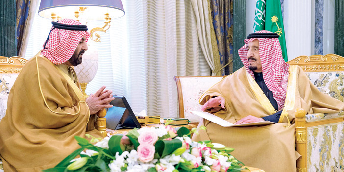 تسلم خادم الحرمين الشريفين الملك سلمان بن عبدالعزيز آل سعود - حفظه الله -، رسالة من أخيه صاحب السمو الشيخ خليفة بن زايد آل نهيان رئيس دولة الإمارات العربية المتحدة.