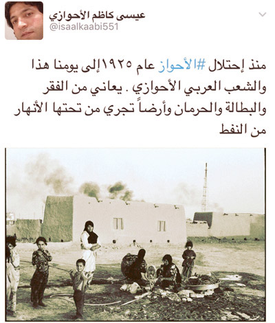 «تعددت الأسماء والهم واحد» بهذه العبارة استهل المهتم بالشأن الإيراني إبراهيم آل علوان الحديث في (الجزء الثاني من مادة الثقافية) الأحواز العربية بين مشانق الملالي وطوفان الظلم والقهر الإيراني المستمر فالأهواز أو الأحواز أو عربستان أو «خوزستان تفريسًا» وبعيدًا عن تعدد الأسماء الصحيحة لهذا الإقليم العربي المحاذي للعراق، والمطل على شمال الخليج العربي والذي يؤكد آل علوان أنه حتى العام 1925م إمارة شبه مستقلة يحكمها الشيخ خزعل بن جابر الكعبي، الملقب آنذاك بـ «أمير عربستان» قبل أن يقوم الشاه الأب رضا بهلوي بغزو الإقليم عسكرياً وأسر الشيخ خزعل ومن ثم ضم الإقليم العربي الأحوازي بمعزل عن إرادته الشعبية. وقد عدلت أسماؤها قسرا إلى خوزستان لطمس هويتها وتغيير معالمها العربية ومزج دمائها بهمج الدماء الفارسية العفنة.. فعرب استان الدولة العربية المحتلة منذ أكثر من تسعين عامًا تعتبر المنفذ البحري المهم لدولة الظلام الفارسية من مضيق هرمز إلى شط العرب وهي الأرض الخصبة الفريدة ومنجم الخيرات وسلة غذاء دولة الرافضة وقد تم مصادرة أكثر من 450 ألف هكتار من أراضيها لصالح المهجرين الفرس فخصوبة أراضيها وجمالها الآخذ وغناها بالثروات أسال لعاب الفرس فهي تنتج 80 % من نفط وغاز إيران وهذا ما يفسر استماتة الفرس في الكيد والمكايدة والمحاولات الشرسة لتغيير التركيبة السكانية وطمس الهوية العربية بعد احتلالها بتواطيء بريطاني ومكيدة فارسية وغفلة عربية.