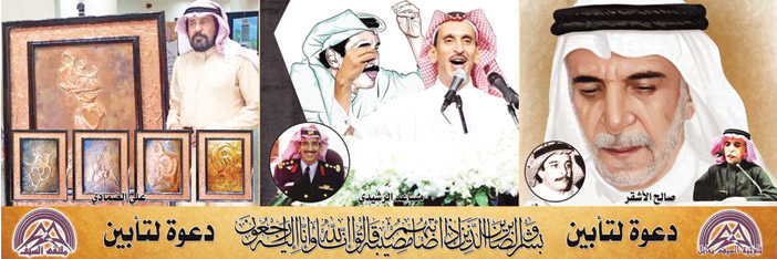 يقيم مركز السيف الثقافي في ثلوثيته أمسية وفاء لتأبين فرسان حائل الثلاثة والذين فقدتهم حائل والوطن خلال الأيام القليلة الماضية ثلاثة من أبرز فرسانها في أدب القصة، والشعر الشعبي الحديث، والفن التشكيلي الطرق على النحاس، حينما خطفتْ يد المنون الأديب والقاص المبدع صالح الأشقر، ثم الشاعر المتميز شاعر الوطن مساعد الرشيدي، ثم الفنان التشكيلي الرائد في الفن النحاسي علي الضمادي.