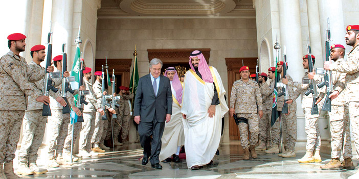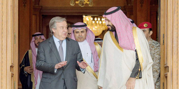 اجتمع صاحب السمو الملكي الأمير محمد بن سلمان بن عبدالعزيز ولي ولي العهد النائب الثاني لرئيس مجلس الوزراء وزير الدفاع في مكتبه بالمعذر أمس مع معالي الأمين العام للأمم المتحدة أنطونيو غوتيريس.