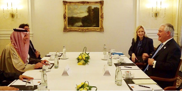 من جهة ثانية التقى معالي وزير الخارجية الأستاذ عادل بن أحمد الجبير أمس معالي وزير الخارجية الأمريكي ريكس تيلرسون، وذلك على هامش اجتماع وزراء خارجية مجموعة العشرين المنعقد في مدينة بون بألمانيا. وتم خلال اللقاء بحث العلاقات الثنائية بين البلدين الصديقين، والمستجدات على الساحتين الإقليمية والدولية ومنها الأوضاع في سوريا واليمن.